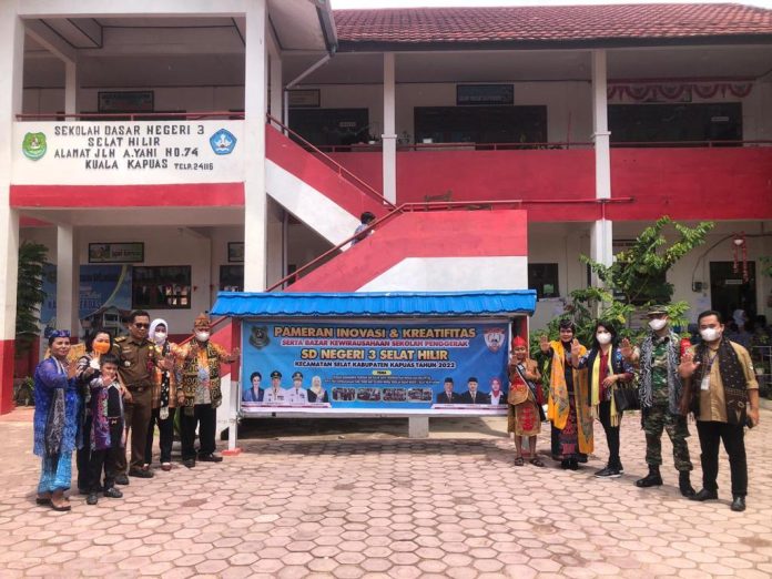 Kadisdik Kabupaten Kapuas Drs. Aswan, Adyatama Kepariwisataan dan Ekonomi Kreatif Erliansyah, Kepala Sekolah SDN 3 Selat Hilir Ratu Muliana, Kepala OPD terkait, Forkopimda Kapuas dan siswa siswi SDN 3 Selat Hilir, di halaman Sekolah SDN 3 Selat Hilir, belum lama ini.