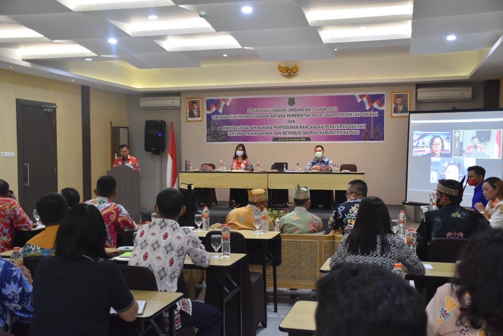 BERITASERUYAN.COM, KUALA KAPUAS– Pemerintah Daerah Kabupaten Kapuas melalui instansi terkait menggelar Sosialisasi Undang-undang Nomor 1 Tahun 2022 tentang hubungan keuangan antara Pemerintah Pusat dan Pemerintah Daerah, yang dibuka secara langsung oleh Sekretaris Daerah Kabupaten Kapuas Septedy, Jumat (23/12/2022) di Hotel Fovere Kapuas.