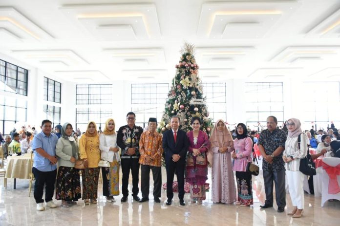 BERITASERUYAN.COM, KUALA KAPUAS- Bupati Kapuas Ben Brahim S Bahat bersama dengan Istri Ary Egahni Ben Bahat yang juga selaku Anggota DPR RI Dapil Kalteng dan seluruh keluarga besar menyambut kedatangan ribuan masyarakat yang hadir dalam open house perayaan natal, yang mana dilaksanakan di Ballroom Rujab Bupati Kapuas, Minggu (25/12/2022).