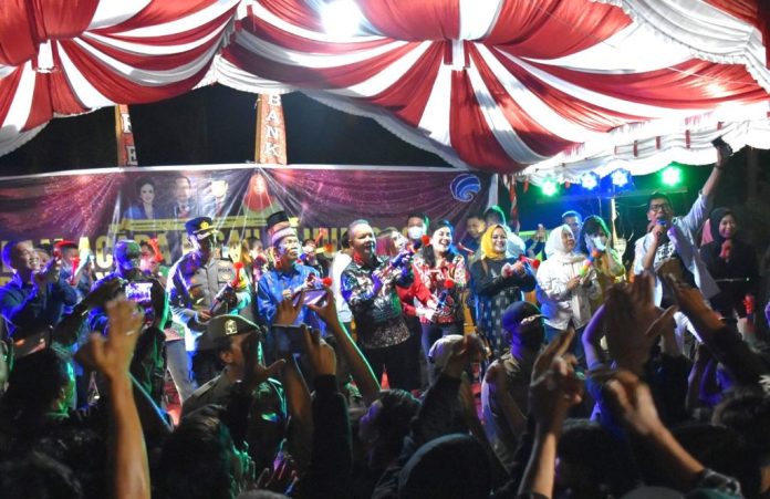 Masyarakat pun tampak antusias tatkala orang nomor satu di Kabupaten Kapuas itu bersama sang istri menyumbangkan suaranya untuk menghibur masyarakat yang berdatangan menyaksikan acara pisah sambut pergantian tahun baru ini.