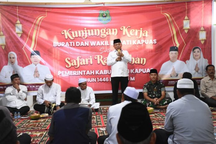 BERITASERUYAN.COM – KUALA KAPUAS – Kecamatan Tamban Catur menjadi lokasi ke tiga dilaksanakannya Safari Ramadhan 1446 H Pemerintah Kabupaten Kapuas.Bertempat di Masjid Nurul Hidayah, Desa Warna Sari, Kecamatan Tamban Catur, kegiatan safari kali ini dihadiri langsung oleh Bupati Kapuas H Muhammad Wiyatno bersama sejumlah Kepala OPD, Jumat (7/3/2025).
