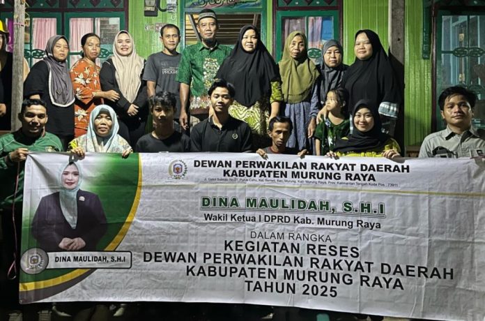 PURUK CAHU – Wakil Ketua I DPRD Murung Raya Dina Maulidah menyerap aspirasi masyarakat saat reses ke Desa Maruwei, Kecamatan Laung Tuhup, Jumat (14/03/2025).