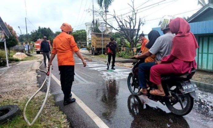 Kejadian ini mengakibatkan beberapa warga yang melintas terjatuh karena kondisi jalan yang licin akibat oli yang tumpah. Lokasi pembersihan berada tepat di depan Masjid Babusalam.