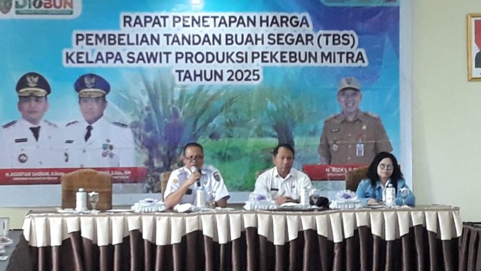 BERITASERUYAN.COM – Palangka Raya – Periode II bulan Maret 2025, Pemerintah Provinsi Kalimantan Tengah melalui Dinas Perkebunan melaksanakan Rapat Penetapan Harga Pembelian Tandan Buah Segar (TBS) Kelapa Sawit Produksi Pekebun, bertempat di Aula Dinas Perkebunan Prov. Kalteng, Rabu (9/4/2025).
