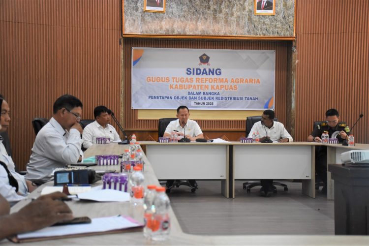 BERITASERUYAN.COM – KUALA KAPUAS – Sekretaris Daerah Kabupaten Kapuas selaku Wakil Ketua Gugus Tugas Reforma Agraria (GTRA) Kabupaten Kapuas Septedy membuka sekaligus mengikuti Sidang GTRA Kabupaten Kapuas dalam rangka Penetapan Objek dan Subjek Redistribusi Tanah Tahun 2025, bertempat di Ruang Rapat Bupati Kapuas, Rabu (16/4).