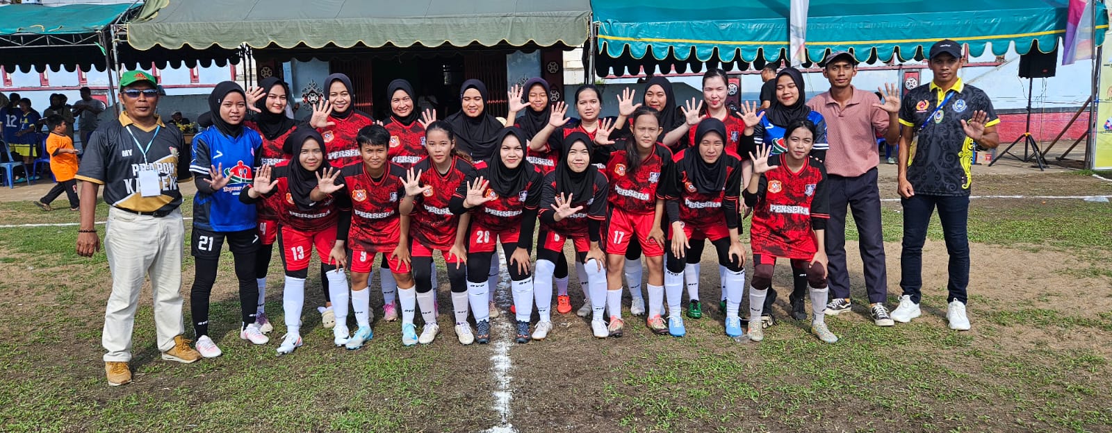 KUALA PEMBUANG- Laga eksebisi sepakbola wanita meramaikan sebelum laga partai final turnamen sepakbola memperebutkan piala Bupati Seruyan dalam rangka Pekan Olahraga KONI kabupaten Seruyan tahun 2025 yang dilaksanakan di stadion mini Gagah Lurus Kuala Pembuang pada Minggu 12 Juli 2025.