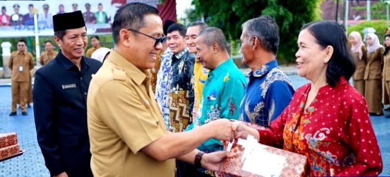 Pj Bupati Barito Utara, Indra Gunawan, secara resmi melepas sebanyak 33 Pegawai Negeri Sipil (PNS) yang memasuki masa purna tugas dalam apel pagi khidmat di halaman Kantor Bupati, Senin (8/9/2025).