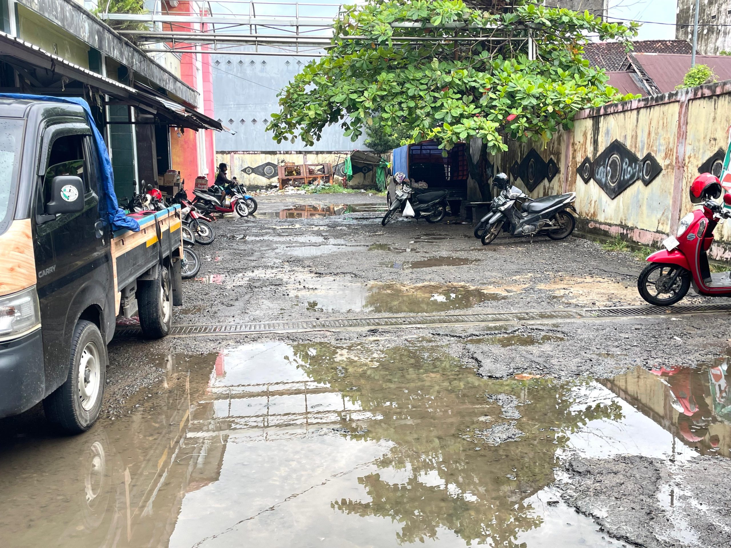 “Semoga ada perhatian dari pemerintah untuk memperbaiki jalan keluar masuk pasar yang saya rasa sudah cukup parah lubangnya,” ujarnya.