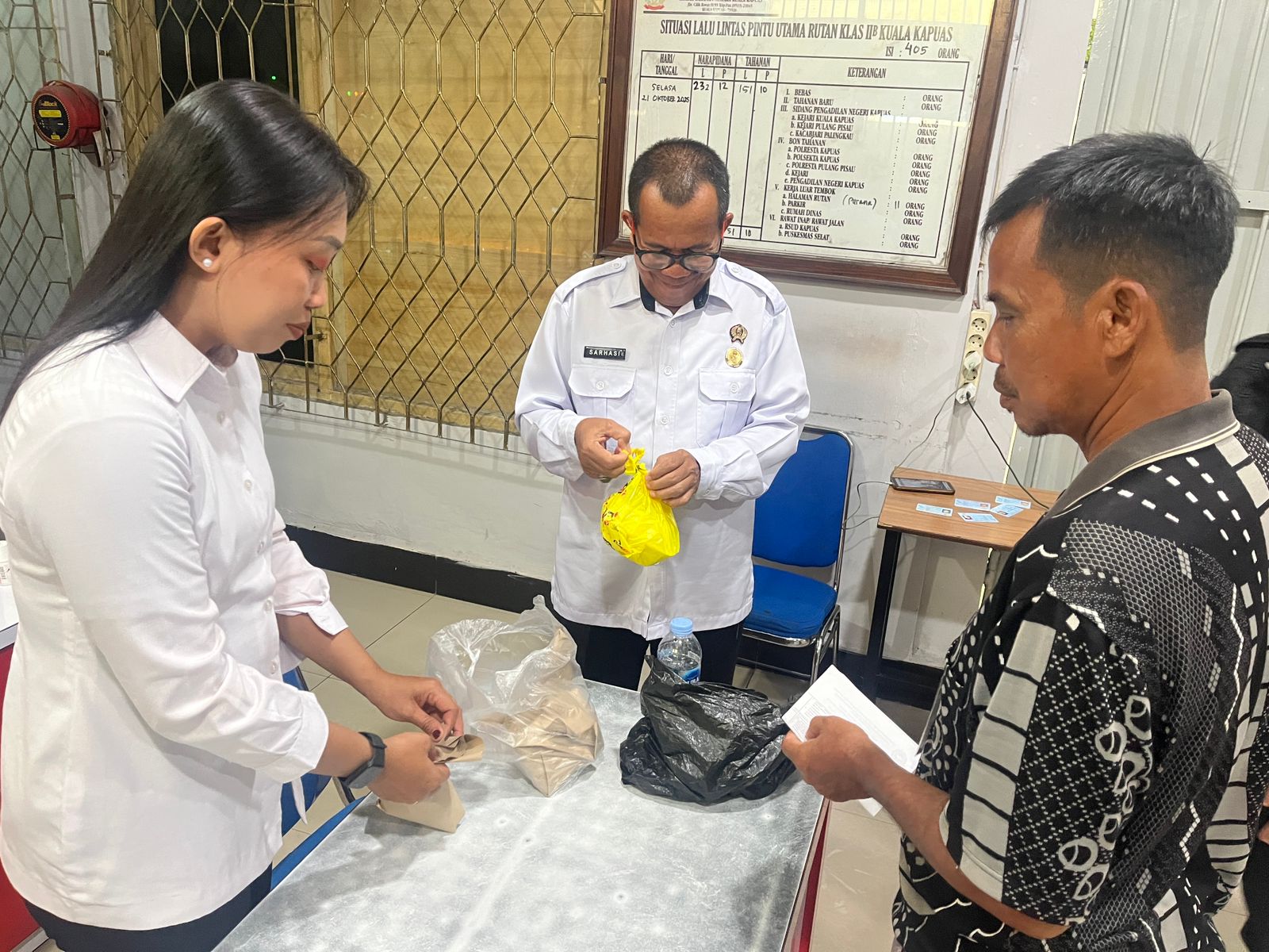 Kuala Kapuas – Dalam rangka memperketat pengawasan dan menjaga keamanan serta ketertiban di lingkungan Rumah Tahanan Negara (Rutan) Kelas IIB Kuala Kapuas, petugas Rutan melaksanakan kegiatan penggeledahan badan dan barang bawaan terhadap tamu kunjungan, Selasa (21/10).