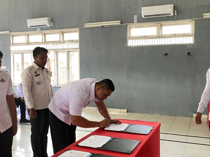 Kapuas – Rumah Tahanan Negara (Rutan) Kelas IIB Kapuas mengikuti kegiatan Penandatanganan Komitmen Bersama Petugas Pemasyarakatan dalam rangka memperkuat upaya pemberantasan peredaran gelap narkoba, handphone, dan barang terlarang lainnya di lingkungan Lapas, Rutan, LPKA, dan Bapas seluruh Indonesia, Senin (20/10). Kegiatan ini diselenggarakan secara serentak oleh Direktorat Jenderal Pemasyarakatan dan diikuti secara daring oleh seluruh jajaran pemasyarakatan di tanah air melalui aplikasi Zoom Meeting.