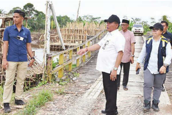 KUALA KAPUAS – Bupati Kapuas H Muhammad Wiyatno melakukan peninjauan progres pekerjaan rekonstruksi jalan dan Saluran Air di Kecamatan Basarang dan pembukaan lahan pertanian serta pembangunan jembatan di Kecamatan Kapuas Hilir, Jumat (31/10).