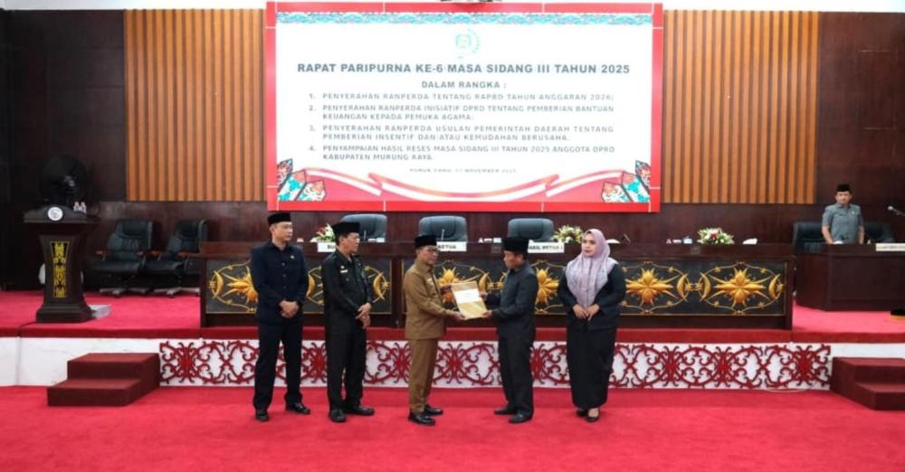 Sementara itu, Bupati Murung Raya, Heriyus, menyampaikan penjelasan terkait dua Ranperda usulan Pemerintah Daerah, yaitu Ranperda APBD Tahun Anggaran 2026 dan Ranperda tentang Pemberian Insentif dan/atau Kemudahan Berusaha.
