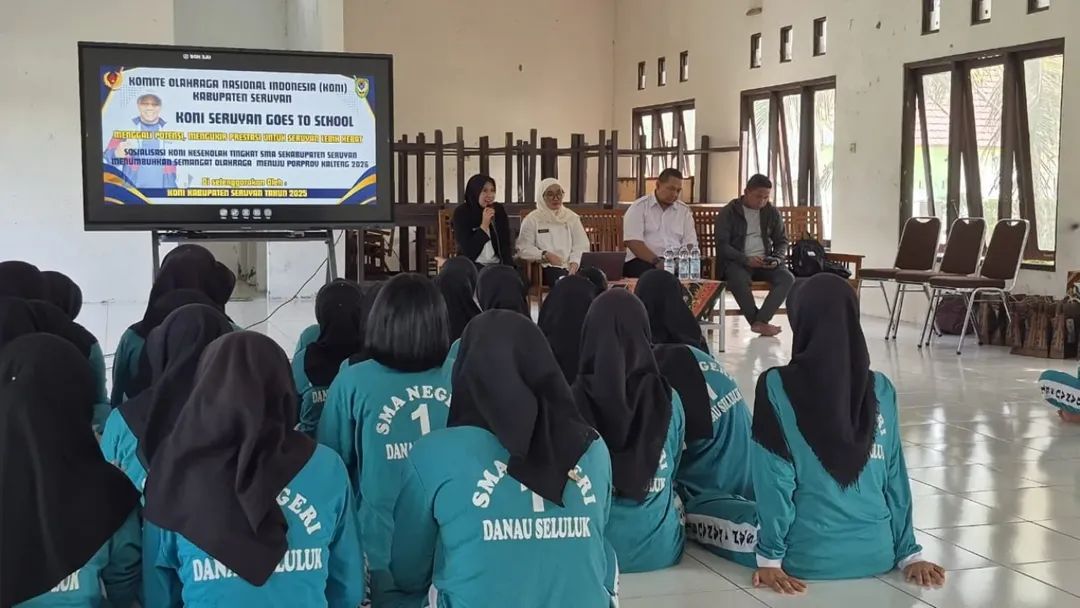 BERITASERUYAN.COM- Semangat pembinaan olahraga sejak dini kembali digaungkan KONI Kabupaten Seruyan melalui program Goes To School yang kali ini menyasar SMAN 1 Kecamatan Danau Seluluk. Kegiatan tersebut berlangsung meriah dengan kehadiran Camat Danau Seluluk, Sumiyati, serta sejumlah pegiat olahraga yang turut memberi energi positif bagi para siswa.