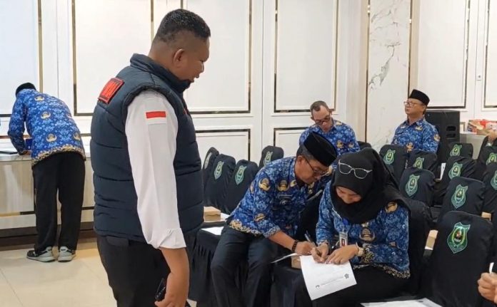 KUALA KAPUAS – Pemerintah Kabupaten Kapuas melalui Badan Kesatuan Bangsa dan Politik (Kesbangpol) bekerja sama dengan Badan Narkotika Nasional (BNN) melaksanakan Deteksi Dini Penyalahgunaan Narkotika melalui Tes Urine NAPZA bagi para pejabat Eselon II dan III. Kegiatan berlangsung di Ruang Rapat Rumah Jabatan Bupati Kapuas, Senin (1/12/2025).
