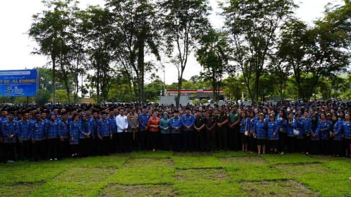 KUALA KAPUAS – Pemerintah Kabupaten Kapuas melaksanakan Upacara Peringatan Hari Ulang Tahun Korps Pegawai Republik Indonesia (Korpri) Ke-54 Tahun 2025 di Halaman Kantor Bupati Kapuas, Sabtu (01/12/2025).