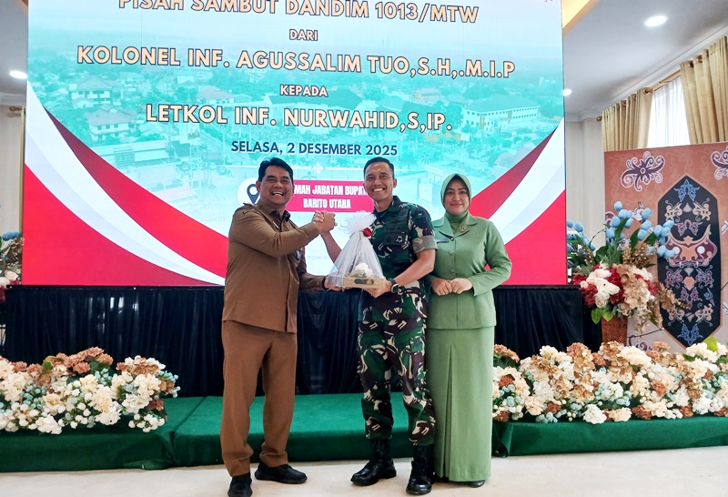 Muara Teweh – Suasana hangat dan kekeluargaan mewarnai acara pisah sambut Dandim 1013 Muara Teweh di Aula Rumah Jabatan Bupati Barito Utara, Selasa (2/12/2025).