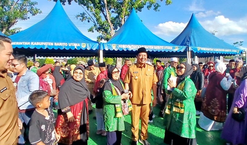 Muara Teweh – Wakil Bupati Barito Utara, Felix Sonadie Y. Tingan, mewakili Bupati H. Shalahuddin secara resmi melepas 100 calon jemaah umroh Kabupaten Barito Utara, Selasa (16/12/2025), di halaman Kantor Bupati.